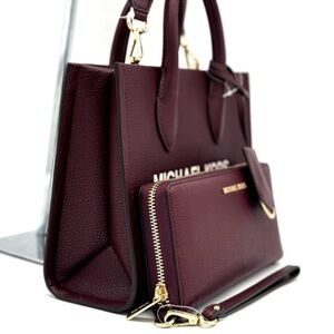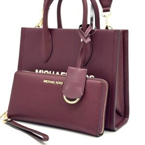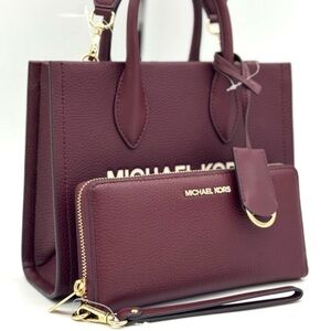 Michael Kors Large Charlotte Tote Bag & Continental Wallet Wristlet Ox Blood