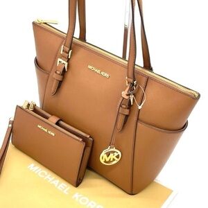 Michael Kors Large Charlotte Tote Bag & Double Zip Wallet Brown (NWT)