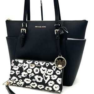 Michael Kors Large Charlotte Tote Bag & Large Continental Wallet Wristlet Black