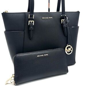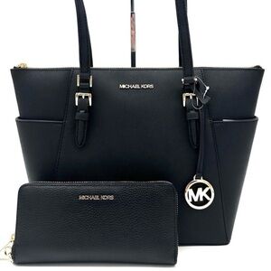 Michael Kors Large Charlotte Tote Bag & Large Continental Wallet Wristlet Black