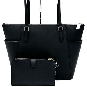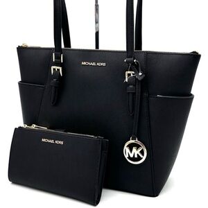 Michael Kors Large Charlotte Tote Bag & Large Double Zip Wallet Black
