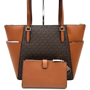 Michael Kors Large Charlotte Tote Bag & Large Double Zip Wallet Brown (NWT)