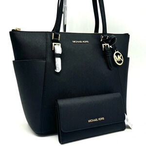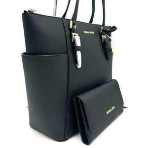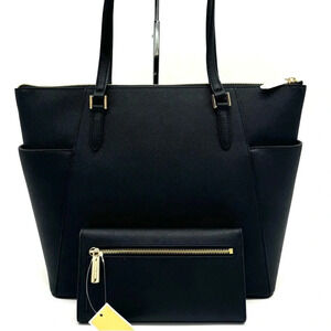 Michael Kors Large Charlotte Tote Bag & Large Trifold Wallet Black/Gold