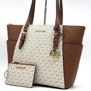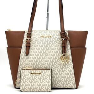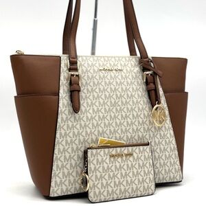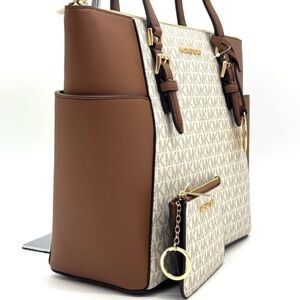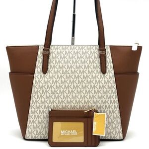 Michael Kors Large Charlotte Tote Bag & Signature Logo Coin Purse Vanilla/Brown
