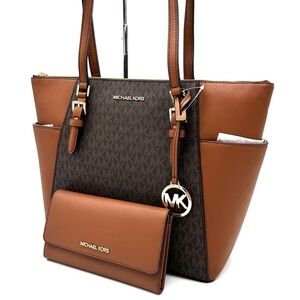 Michael Kors Large Charlotte Tote Bag & Trifold Wallet Brown (NWT)