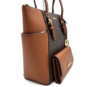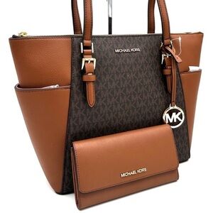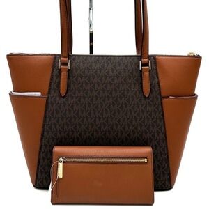 Michael Kors Large Charlotte Tote Bag & Trifold Wallet Brown (NWT)