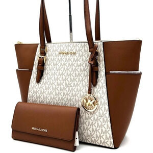 Michael Kors Large Charlotte Tote Bag & Trifold Wallet Vanilla/Brown
