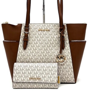 Michael Kors Large Charlotte lote Bag & Large Trifold Wallet Vanilla/Brown