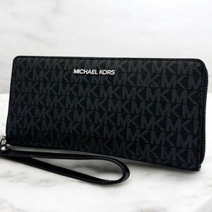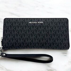 Michael Kors Large Continental Wallet Wristlet Black Signature