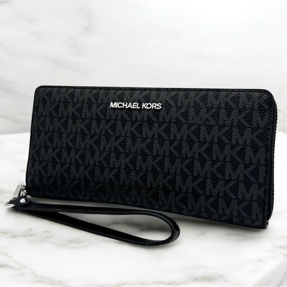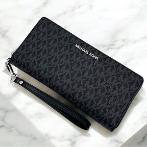 Michael Kors Large Continental Wallet Wristlet Black Signature