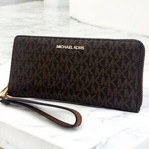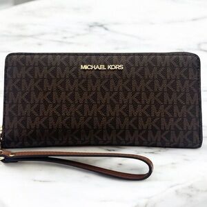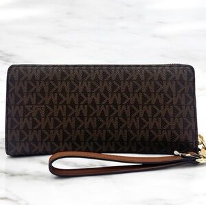 Michael Kors Large Continental Wallet Wristlet Brown Signature
