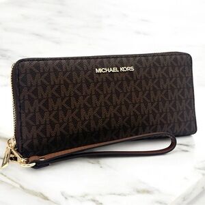 Michael Kors Large Continental Wallet Wristlet Brown Signature