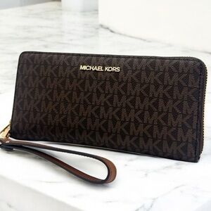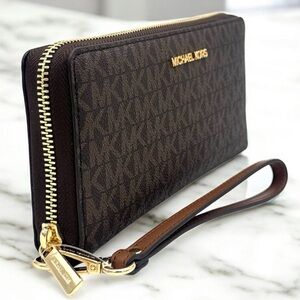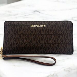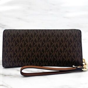 Michael Kors Large Continental Wallet Wristlet Brown Signature