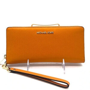 zippered pocket and multiple full-length bill compartments Removable leather wristlet strap with swivel clasp and a drop of 6 inches