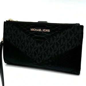 Michael Kors Large Double Zip Wallet Wristlet Black Multi