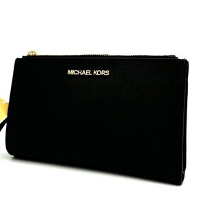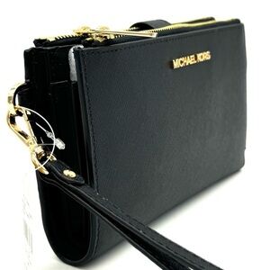 Michael Kors Large Double Zip Wallet Wristlet Black/Gold