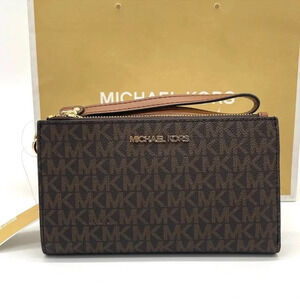 Michael Kors Large Double Zip Wallet Wristlet Brown