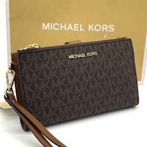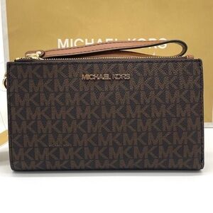 Michael Kors Large Double Zip Wallet Wristlet Brown