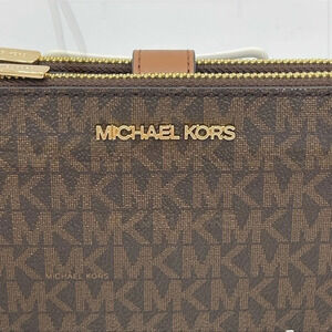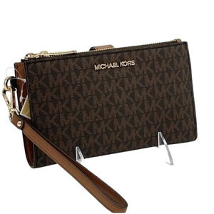 Michael Kors Large Double Zip Wallet Wristlet Brown/Gold
