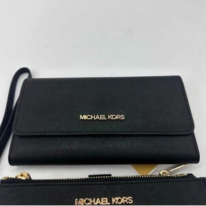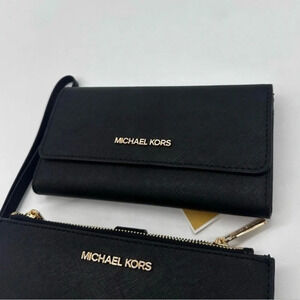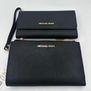 Michael Kors Large Double Zip Wallet Wristlet & Trifold Wallet Black