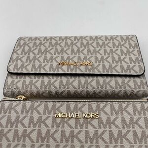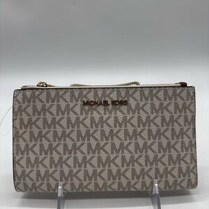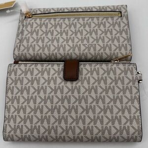 Michael Kors Large Double Zip Wallet Wristlet & Trifold Wallet Vanilla/Brown