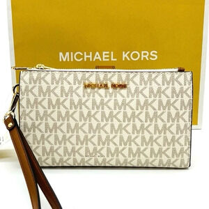 Michael Kors Large Double Zip Wallet Wristlet Vanilla/Brown