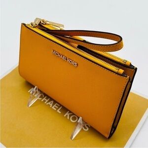 Michael Kors Large Double Zip Wallet Wristlet Jasmine Yellow