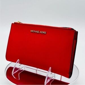 Michael Kors Large Double Zip Wallet Wristlet Red/Gold