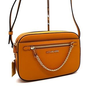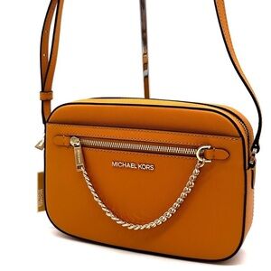 MK signature PVC coated canvas and genuine Saffiano leather with gold-tone hardware