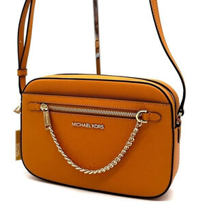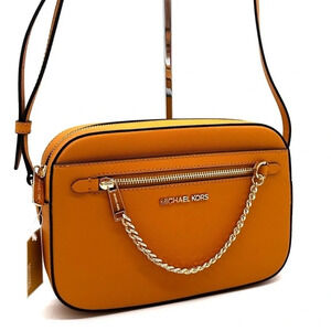MK signature PVC coated canvas and genuine Saffiano leather with gold-tone hardware