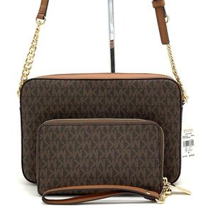 Michael Kors Large EW Crossbody Bag & JST LG Flat MF Phone Case Wallet Brown