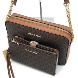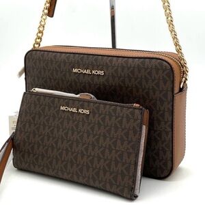 Michael Kors Large EW Crossbody Bag & Large Double Zip Wallet Brown