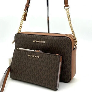 Michael Kors Large EW Crossbody Bag & Large Double Zip Wallet Brown