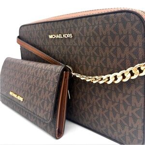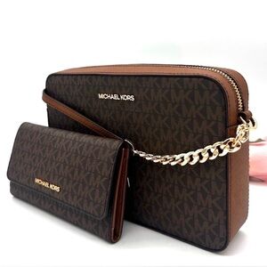 Michael Kors Large EW Crossbody Bag & Large Trifold Wallet Brown