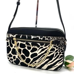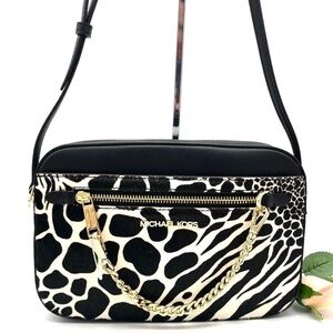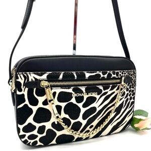 Michael Kors Large EW Zip Chain Crossbody Bag Black/White