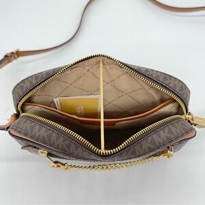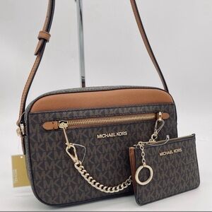 Michael Kors Large EW Zip Chain Xbody Bag & Coinpouch w ID Brown