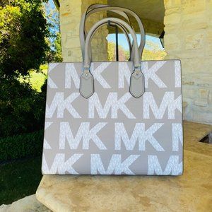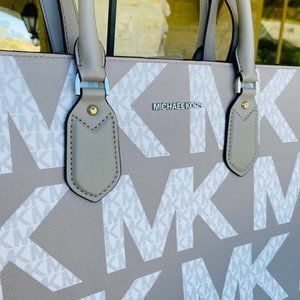 Michael Kors Large Everly Tote&wallet set signature BNWT White grey