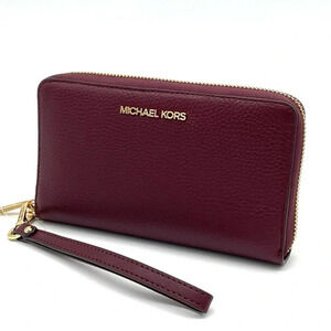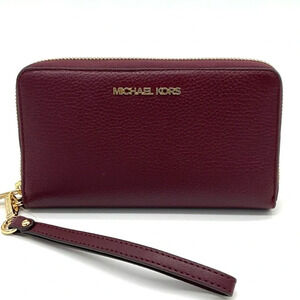 Michael Kors Large Flat Mf Phone Case Wallet Ruby Red Leather