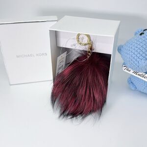 Michael Kors Large Fox Fur Pom Pom In Mulberry Gold Hardware Keychain Box Charms