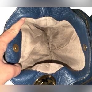 Michael Kors Large Fulton Triple Compartment Hobo 2 Strap Shoulder Bag Navy Leather Gold lots of storage
