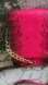 Hot Pink and blk snakeskin python embossed leather crossbody purse with gold-tone hardware. Chain detail adjustable cross-body strap.