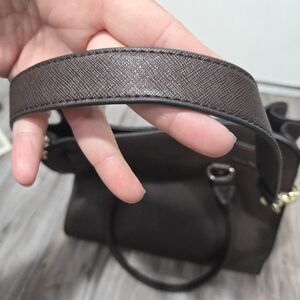 couple scratches, little fading on hardware, and stitching where handles are tiny bit tearing.