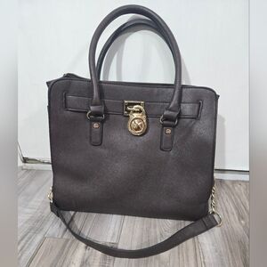 Michael Kors Large Hamilton Chocolate Brown Tote w/ Pad Lock