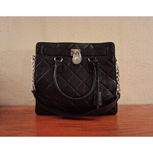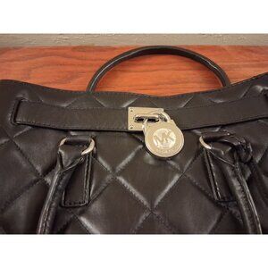 Michael Kors Large Hamilton Quilted Shoulder Bag Handbag Leather Lock &Key Black