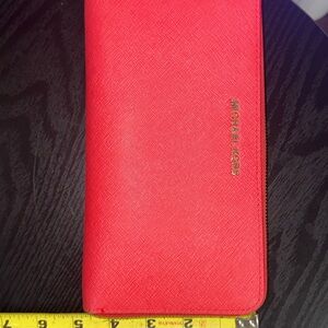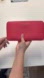 I bought this in 2012 when coral was THE color. I have loved the various card slots to fit all of my store cards, cash, change, checkbook, etc. This wallet is just too big for most of my purses and needs a new home.