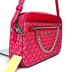 Michael Kors Large Jet Set Large Signature Logo Crossbody Bag - Dark Raspberry