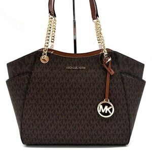 Michael Kors Large Jet Set Travel Chain Shoulder Bag Brown