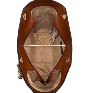 • Interior: 1 zippered pocket & 2 slip pockets Michael Kors signature lining.
