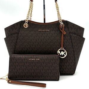 Michael Kors Large Jet Set Travel Chain Shoulder Bag & Continental Wallet Brown