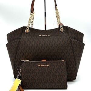 Michael Kors Large Jet Set Travel Chain Shoulder Bag & Double Zip Wallet Brown
